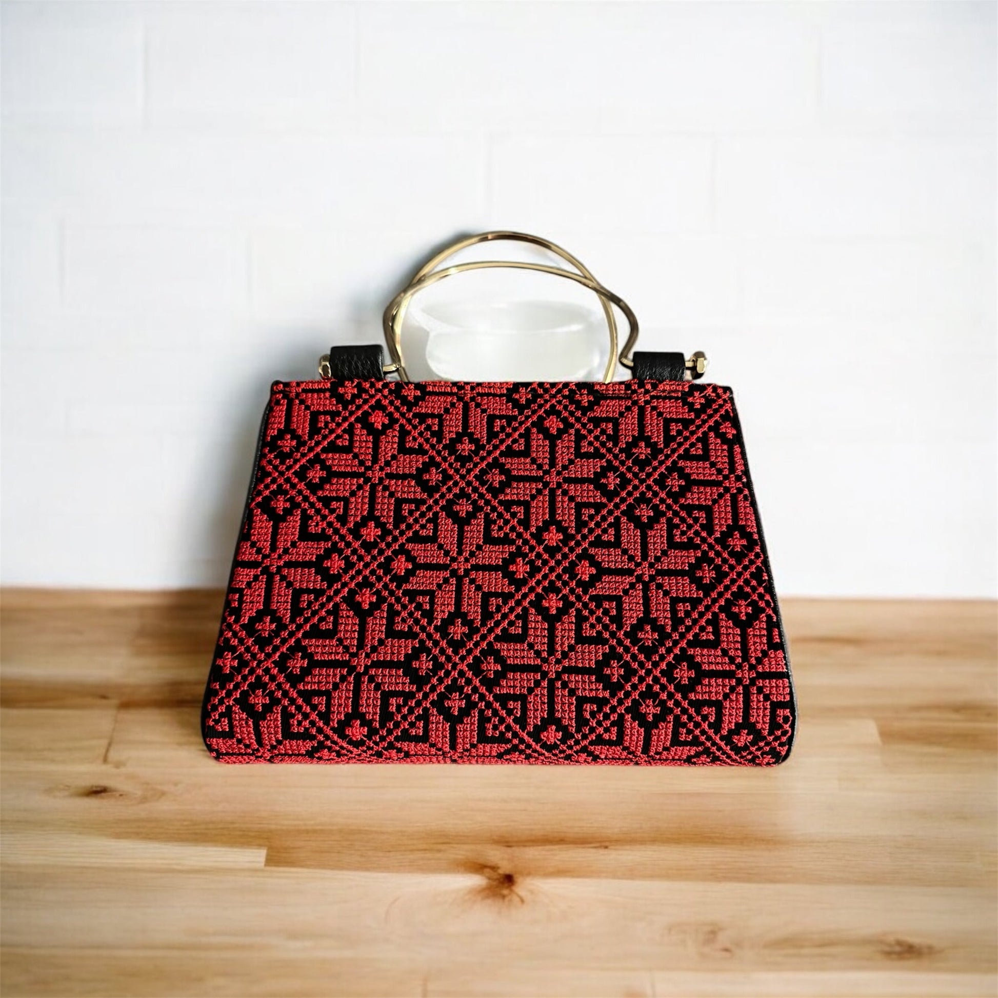 Small Tatreez Purse – Golden Handle with Optional Shoulder Strap