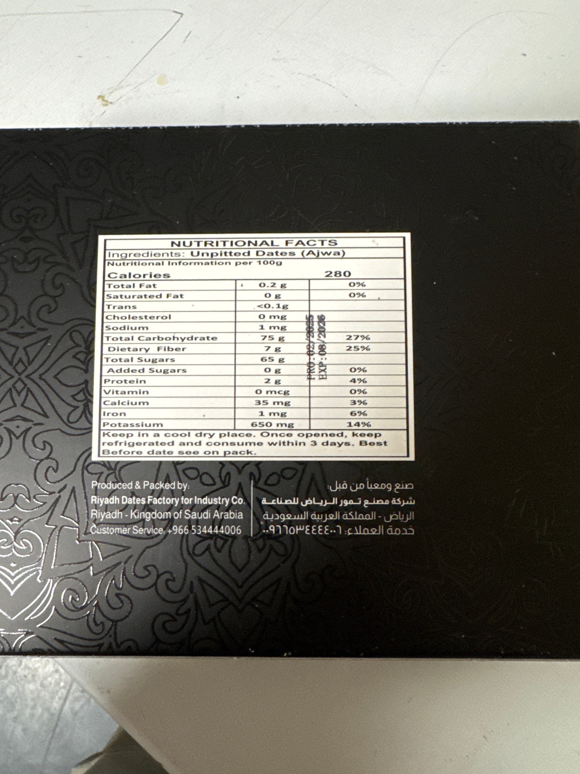 Known for their distinctive dark color and rich flavor, Ajwa dates are traditionally valued for both taste and nutrition. This beautifully designed box makes them perfect for gifting, Ramadan, Eid, or everyday enjoyment.