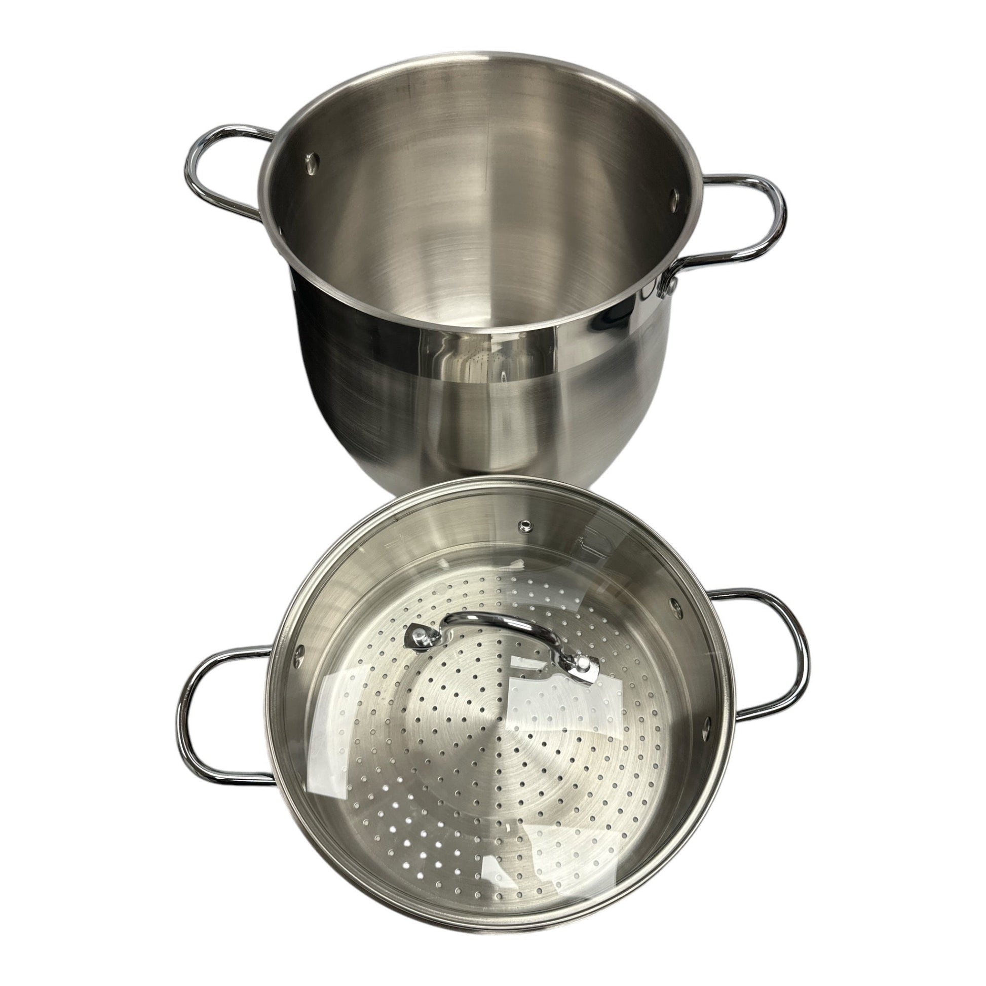 - Durable, Induction Compatible, Double Layer Design with Steaming Basket, Thickened for Even Heat Distribution