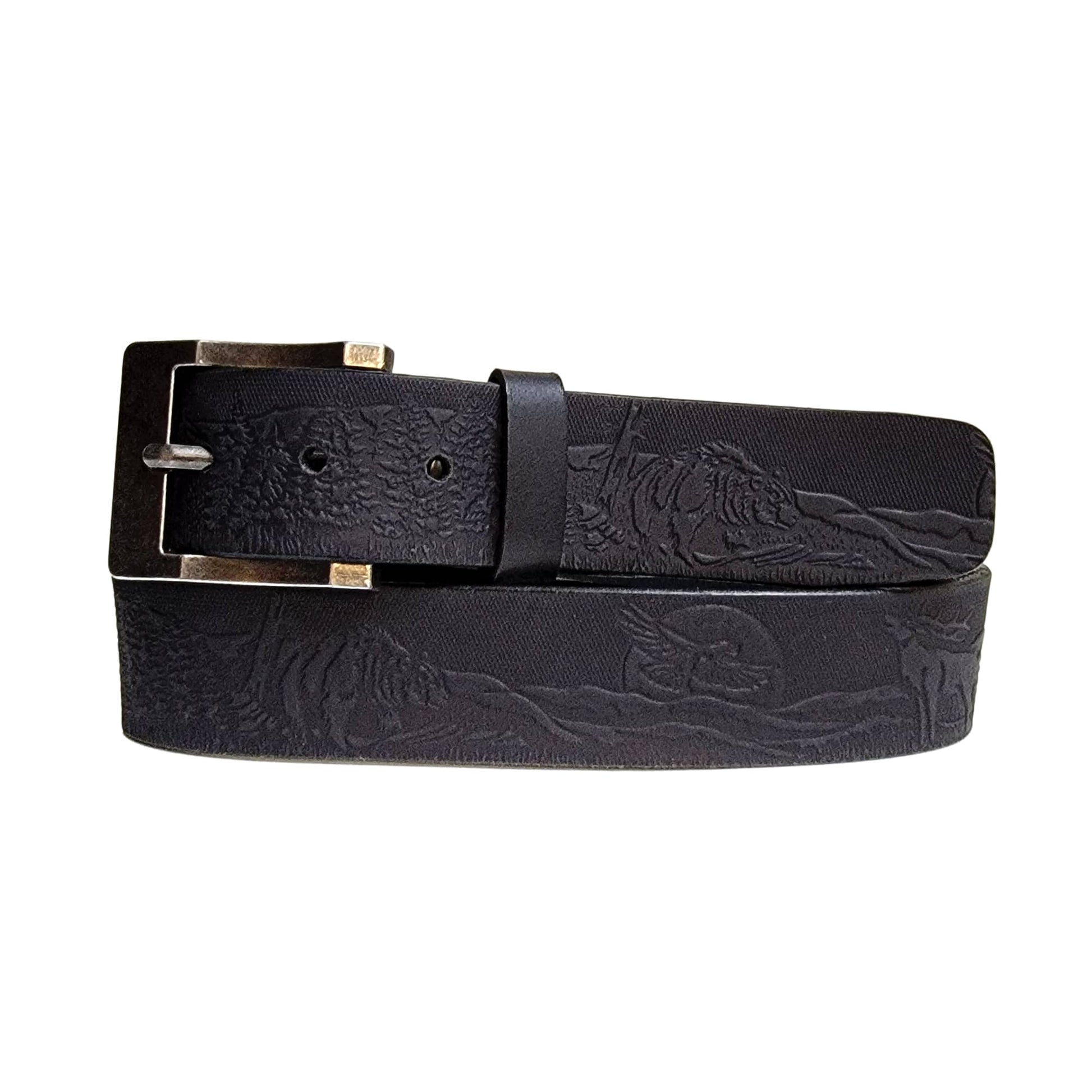 The Wildlife Belt - Black Embossed Full Grain Leather Belt Made in Canada