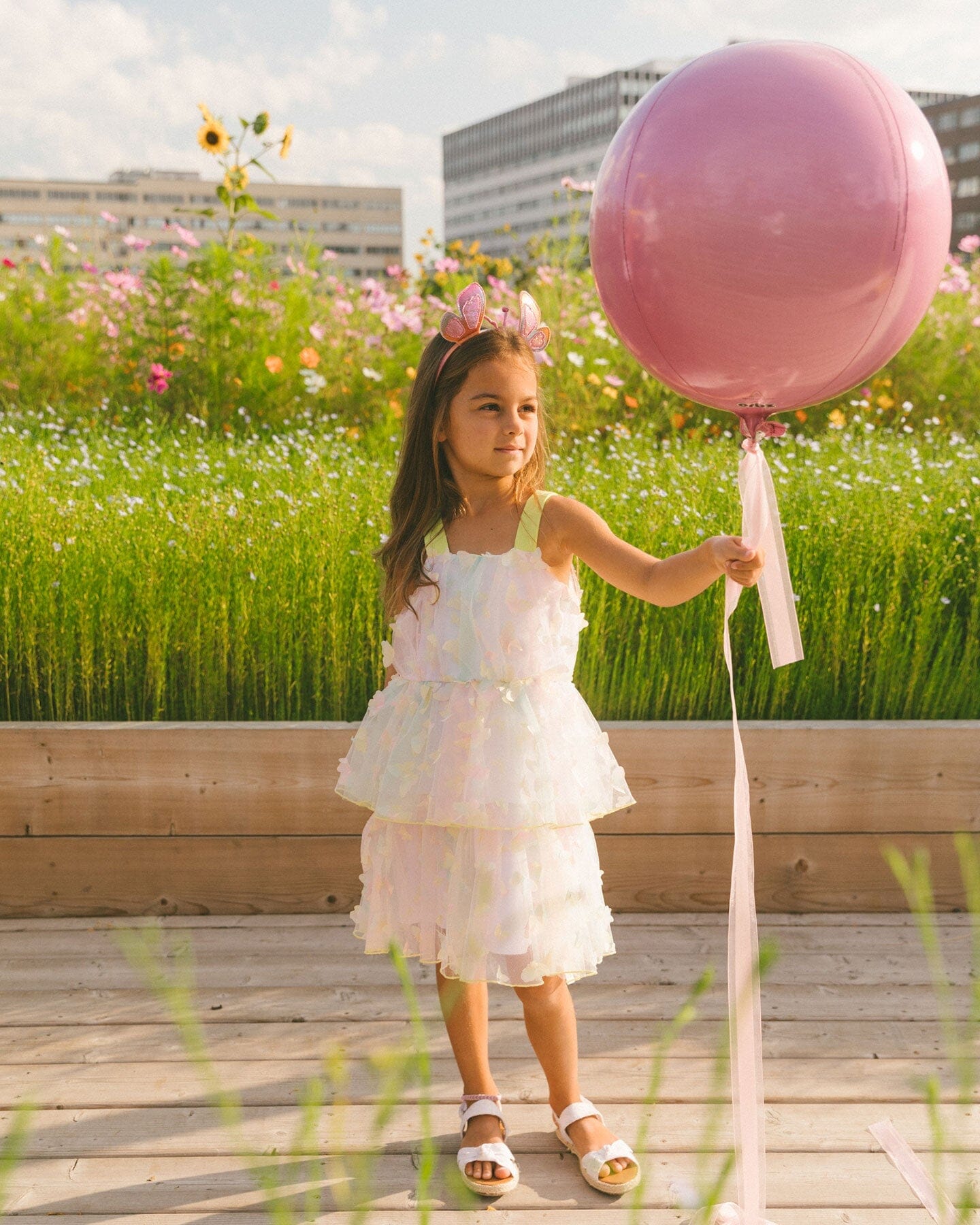 Make her next special occasion a truly memorable one with our Tiered Printed Mesh Dress Multicolored with Butterflies. Bursting with color and texture, this gradient pastel dress features a sleeveless bodice with wide straps, a square neckline, and a tiered A-line skirt adorned with three dimensional butterfly appliques.