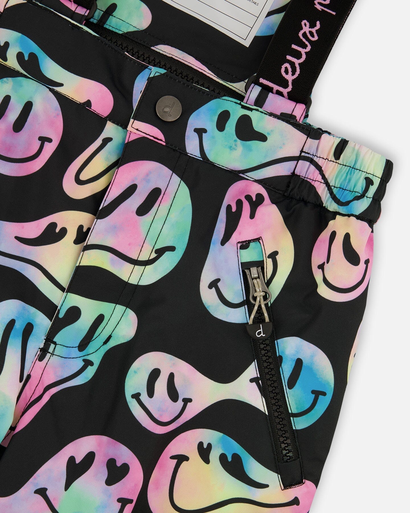 Waterproof, breathable, and insulated for cold protection down to -30°C (-22°F), our two-piece PLAY ski suit in smiley face print is designed for maximum comfort, warmth, and performance in the snow. This winter snowsuit features a fleece-lined jacket with a detachable and adjustable hood, articulated sleeves for improved range of motion, elastic cuffs, a snow skirt, expandable sleeves so you can adjust the length as the child grows, and a protective wind flap and chin guard. The pants are constructed with Cordura®-reinforced panels for long-lasting durability, articulated knees, adjustable and removable suspender straps, ankle snow guards, and zippered pockets to hold ski passes and other essentials.